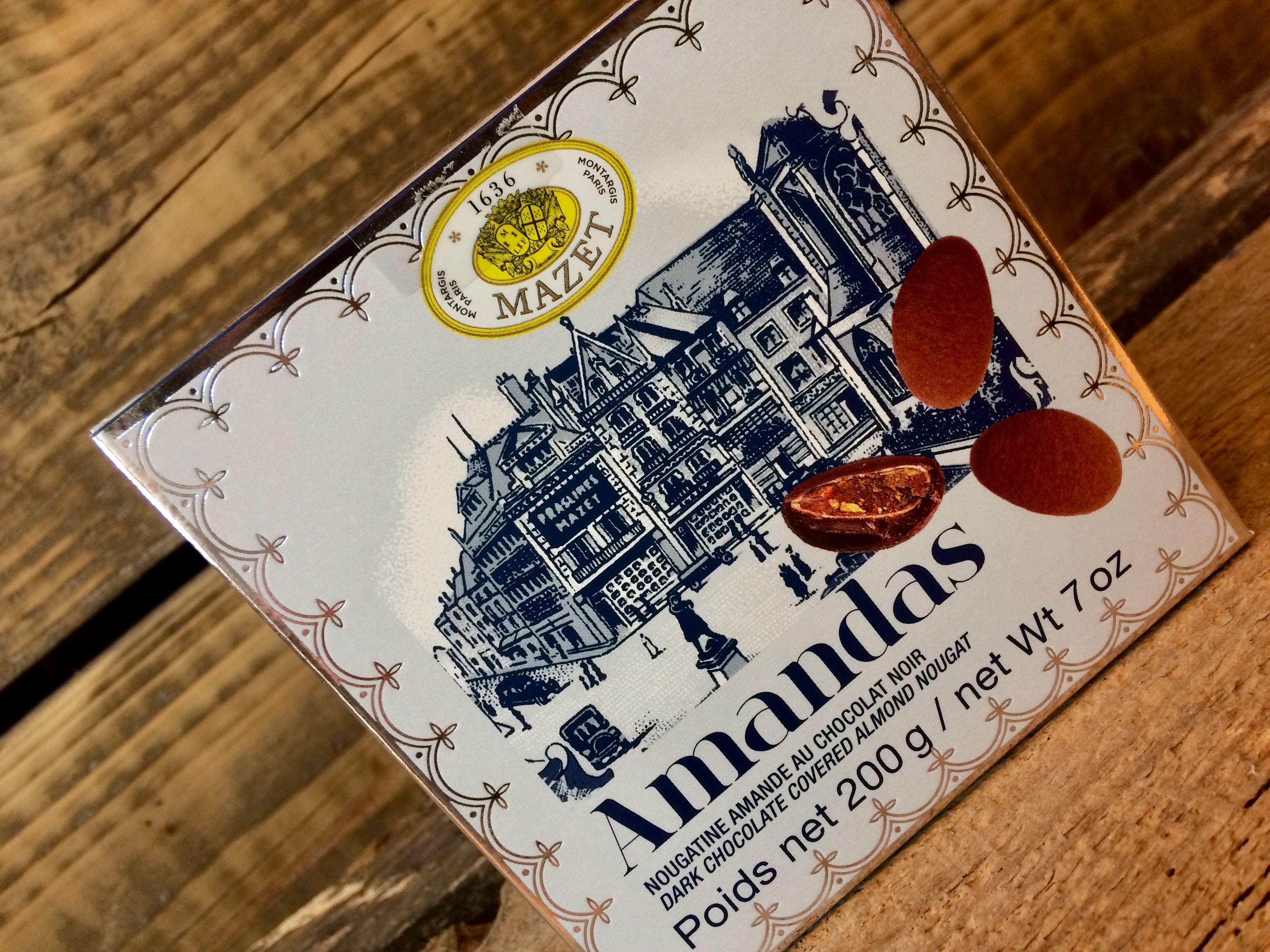 Créée par Léon Mazet en 1936, cette nougatine aux amandes est recouverte de chocolat noir intense puis roulée dans une fine poudre de cacao. cette recette fait des Amandas la deuxième spécialité historique de la maison.